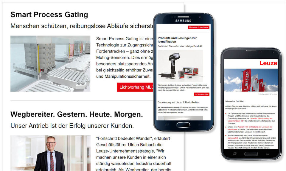 Die mobile Variante wird nicht nur auf dem iPhone sondern auch auf Android-Geräten wie dem Samsung dargestellt. Das Mailing füllt auch größere mobile Bildschirme zu 100% aus.