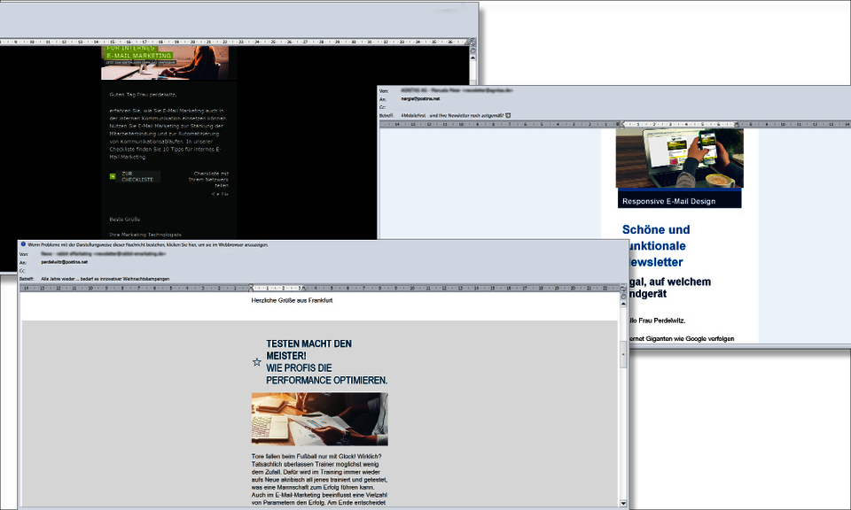 Mailings für alle Endgeräte zu optimieren ist anspruchsvoll. Neue Smartphones haben hochaktuelle Anforderungen, doch Outlook kann seit 2004 nur Tabellendesign. Mittlerweile hat sich das Programmieren von Mailings zu einer eigenen "Kunst" entwickelt, die auch die besten Web-Programmierer nicht beherrschen. Und ständig kommen neue Herausforderungen hinzu.