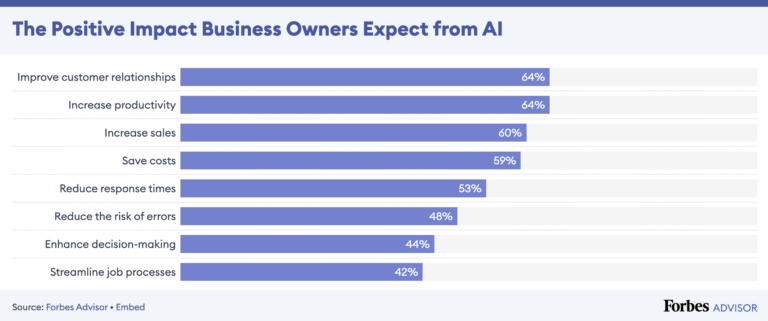 Die Liste positiver Aspekte im geschäftlichen Einsatz von KI ist lang. So erwarten sich Geschäftsinhaber laut Forbes vor allem große Möglichkeiten in Kundenbindung und Produktivität, Sales und Kosteneffizienz.