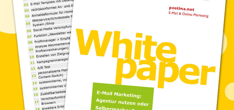 Das Whitepaper greift grundsätzliche Bausteine erfolgreichen E-Mail Marketings auf: Worauf muss bei der Konzeption einer Newsletterkampagne geachtet werden? Lohnt sich eine eigene Software? Und wie findet man in der Masse professioneller E-Mail Softwares die passende? Und vor allem: Was leistet bei dem Ganzen eigentlich eine gute Agentur? - Mit Checklisten.